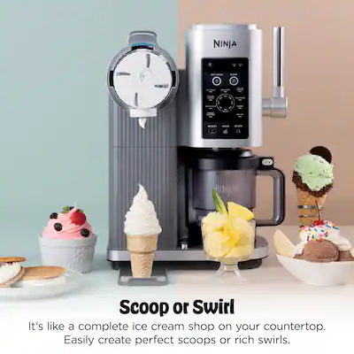 The Ninja Swirl™ by CREAMi® turns almost anything into ice cream, soft serve,and much more at the touch of a button. Bring the ice cream shop to your countertop withCreamify Technology®—now with soft serve. From one-ingredient fruit sorbets to protein-packed, low-calorie desserts, create customizable treats as unique as you are. Customize flavor,control ingredients, and create classic scooped or swirled treats—the possibilities are endless.